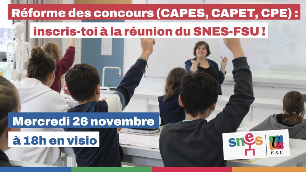 Le SNES-FSU organise une visio le mercredi 26 novembre à 18h pour informer les candidat·es aux concours [...]